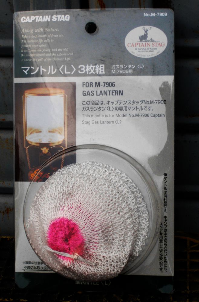 キャプテンスタッグというブランドのランタンマントルを使用する。この製品はサイズがL、M、Sと3種類あるが、Lを採用する。